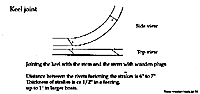 The keel is cut and planed into its T- or Yshape and levelled onto temporary wooden blocks fastened to the floor in the workshop. The measures of the keel is of couse according to the chosen boat design. The keel must be cept firmly in position. It should be made from dry and 'dead' wood to prevent deformations during the construction, and, of course, be absolutely straight as seem from above. Some Viking ships, as the Oseberg ship, have a rockered keel, which means that the keel have to be fashioned into a curve before any strakes can be fitted. Many crafts also sported shallow false keels (on. 'drag') to protect the keel and bows from wear after repeated beachings. Attach the false keel now, if it was present originally.