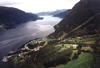 stuper bratt ned i fjorden. Dette gjør fylkesvegen