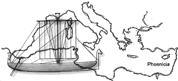 (Click to enlarge)Phoenician merchant ship with similar rig, ca 1000 BC.