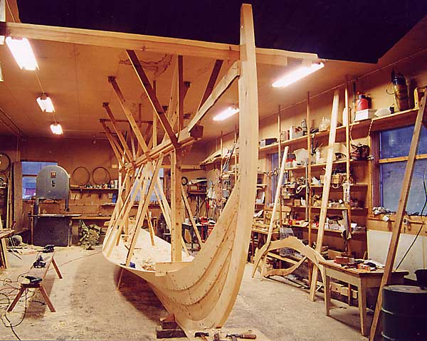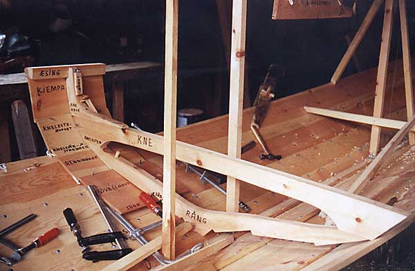 Building a Viking ship or a boat of Norse design involves a traditional craftsmanship which is a refined art, delivered from master to apprentice, usually from father to son for generations. The skills vere passed on as tacit knowledge, mostly orally and by by practising the craft, usually without any detailed drawings or accurate diagrams. In additon, very often the crafter was himself an experienced seafarer, having participated in seasonal fisheries in the fjords and offshore from his early teens, giving him a first hand experience of what distinguished a good boat from a dangerous one. I have not yet built a wooden boat myself, but by visiting and knowing several boat builders I have a fair understanding of the main principles of how it has been and still is done in north-western Norway. This page is meant to explain some of the basic steps of norse wooden shipbuilding, and should not be regarded as a complete how-to guide as skill and experience is difficult to pass on in plain text.