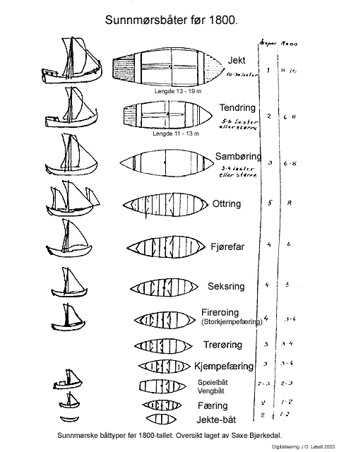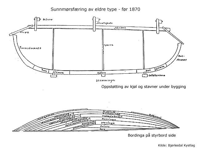 also more elastic and could take the waves very smooth. The boats from Sunnmøre varied in size from boats with only one pair of oars to "ottring", "fjørefar" and "tendring" with 5 og 6 pairs of oars. This construction was generally abandoned after 1870, but still some boats are built in Bjørkedalen. |