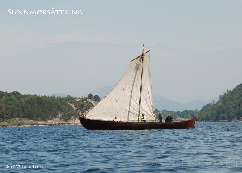 "så mjuk som ei vidje". Båtene var som regel rigget med et trapesformet råsegl, kjent som snidsegl eller det "asymmetriske sunnmørsseglet". På lange strekk er dette et godt og effektiv segl, og godt på kryss. Men når man skal slå, så må segles tas ned og vendes før det heises opp i ny posisjon. Sunnmørsbåtene favner et vidt spekter