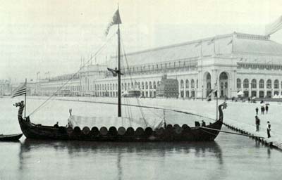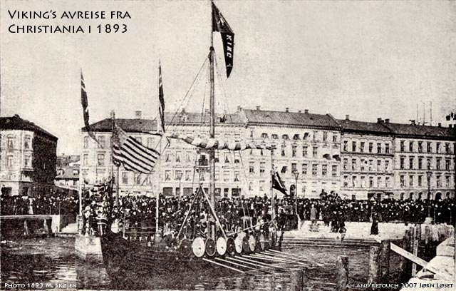 I 1889 an american General (identity unknown to me) captured the idea of building a replica of the Gokstad ship. This was reported in Bergens Tidende, one of Norway's major newspapers. The idea of a viking ship replica was born, but still not realized. In 1892 a rumour spread to Norway that a replica of Christopher Columbus' ship Santa Maria was to be displayed at The World's Columbian Exposition in Chicago, USA, the following year. The exposition opened at 10.12.1892, with great celebrations of the 400-year anniversary of Columbus' discovery. A group of resourceful people in Norway saw this as an opportunity to challenge the common view of Columbus being the first european to land in America, by proving that the vikings really had ships that were capable of crossing the Atlantic 500 years earlier than Columbus. The norse and icelandic sagas told about the Vinland discoveries by Bjarni Herjolfson and Leiv Eiriksson around year 1000, nearly half a milennium before Columbus. In Norway the sagas were regarded to be true, but the archaeological evidences still lacked at that time. The group formed a comittee for the project and editor Magnus Andersen was promoted to be the leader, with formal rank as naval captain. Now that the Gokstad ship was found and examined, Andersen had a historical correct ship to replicate. He wanted to sail it from Norway via Newfoundland to the fair in Chicago. A pretty daring project!