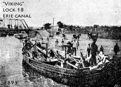 The Erie canal, at the time 400 eng. miles and 71 locks in all, start at wednesday June 28. at 14.00, mast lowered and the dragon head taken off because of many low bridges across the canal. The draught was only 6 feet. The clearance in width was only 6 inches! The locks were 17 feet 6 inches wide, while the ship was 17 feet. The mattresses onboard were used as fenders. Erie map.Rochester, towed by steamer "Netty".